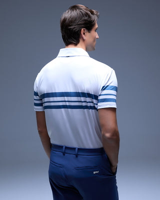 Polo blanco sublimado con rayas, diseñado para rendir en cada swing. Tejido técnico de alta transpirabilidad y elasticidad que se adapta a cada movimiento, manteniendo frescura y comodidad durante toda la partida. Su acabado sublimado garantiza un color uniforme y duradero, mientras que el diseño combina funcionalidad y estilo moderno dentro y fuera del campo.
